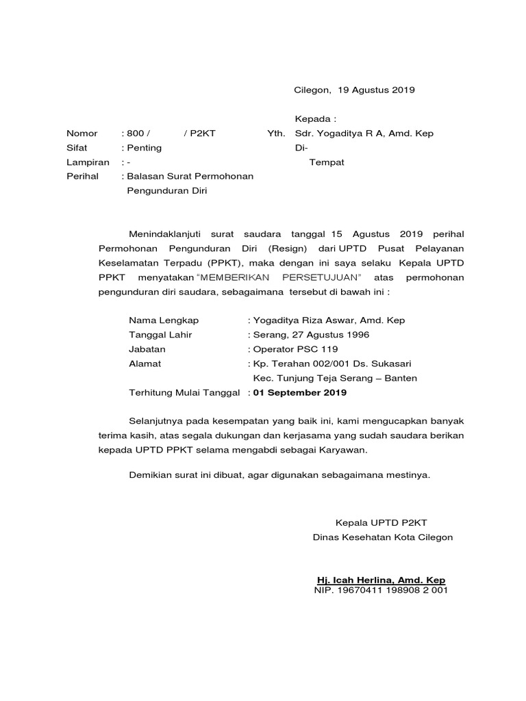 Surat Balasan Pengunduran Diri Dari Pekerjaan : Contoh Surat Pengunduran Diri Sebagai Apoteker Contoh Surat / Pengajuan pengunduran diri yang dilakukan oleh gubernur jenderal rijckloff van goens sebenarnya telah dilakukan sejak 1679 namun baru mendapatkan respon dari heeren xvii (tujuh belas orang pemimpin tinggi vereenigde oostindische compagnie) melalui surat tertanggal 29 oktober 1680, didalam surat tersebut heeren xvii menerima pengunduran dirinya.